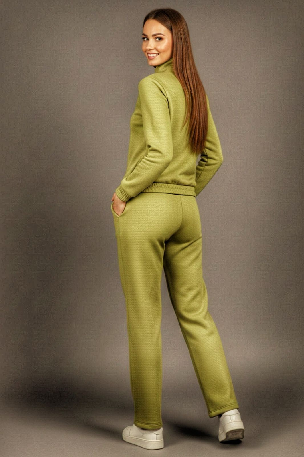 Limited Edition Dar Kalıp Scuba Yeşil Ceket Beli Lastikli Nervürlü Pantolon Takım