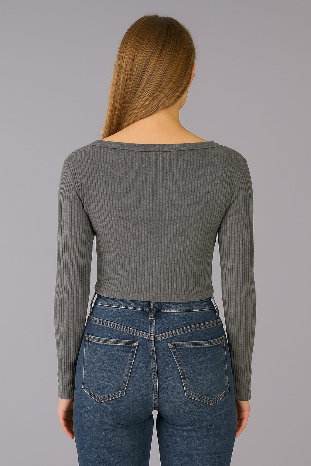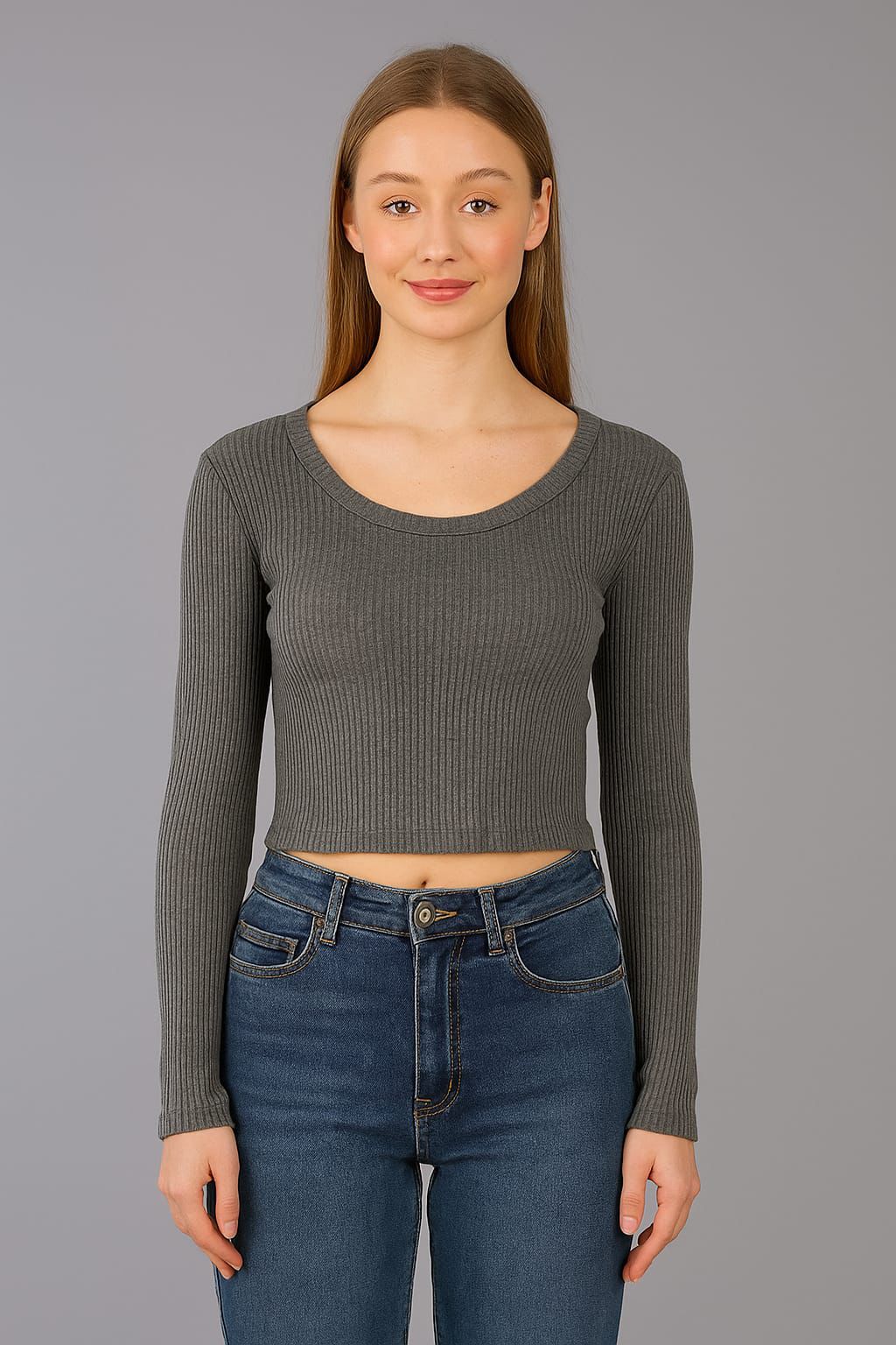 Yeşil Bot Yaka Bel Drapeli Uzun Kollu Modal Bluz